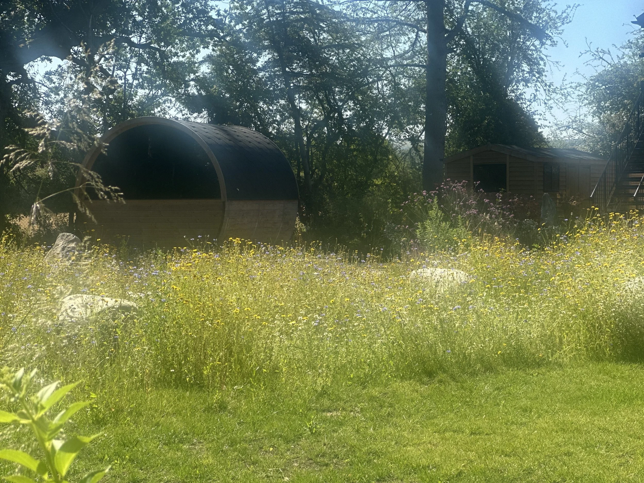 Set within an existing woodland we were commissioned to design and create a large, immersive, family orientated garden that celebrated the beauty of the natural world. Raised Oak walkways lead you through the garden, connecting the house gardens to the oak decked sauna garden, through a wildflower meadow and down to the swimming pool garden. Deep planted borders, sweeping lawns and wildflower meadows flow throughout.